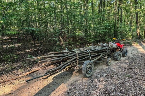"Na štvorkolke sa pokúsili odviezť 35 kusov stromov hrabu obyčajného, približne trojmetrovel dĺžky, ktoré vyrúbali sekerami," informujú policajti na sociálnej sieti.