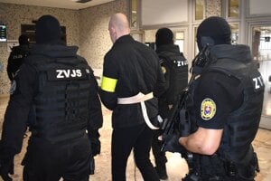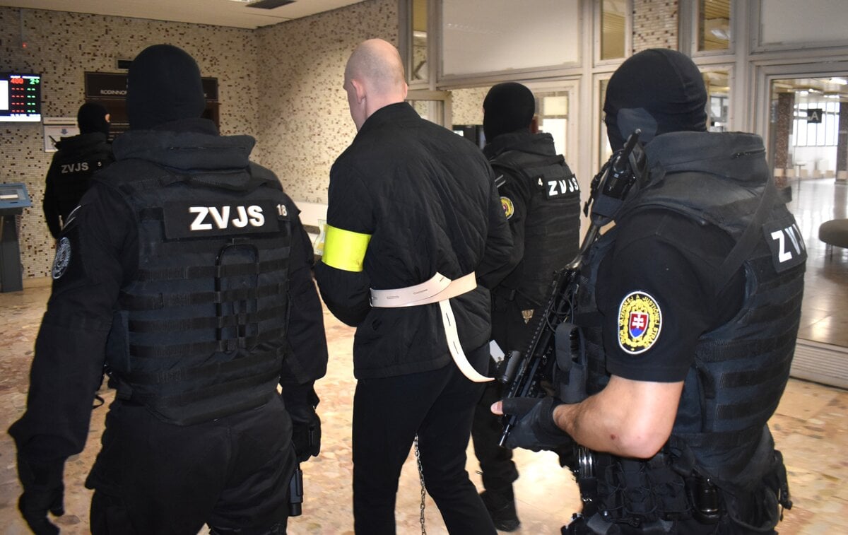 Takýto pohľad sa v piatok dopoludnia naskytol zamestnancom a klientom košického mestského súdu. Išlo o eskortu, ktorá sprevádzala obvineného Miroslava T. na výsluch pred sudkyňu mestského súdu.