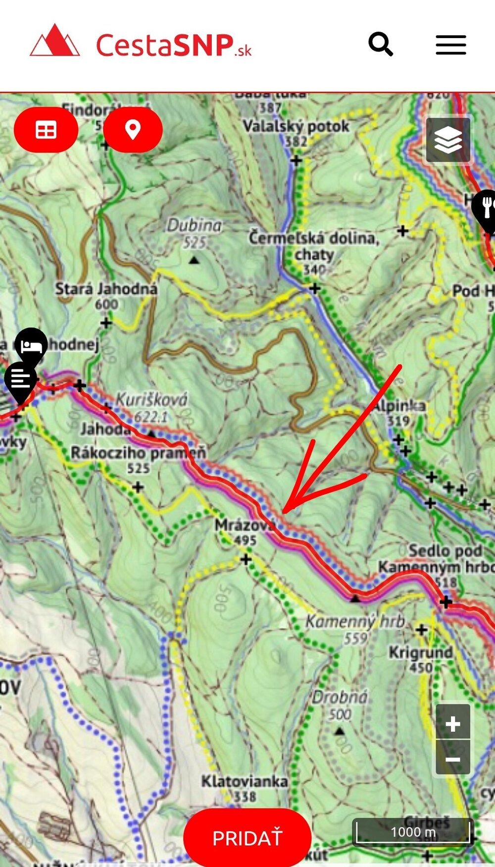 Šípka ukazuje na miesto, kde bolo auto v zákaze vjazdu.