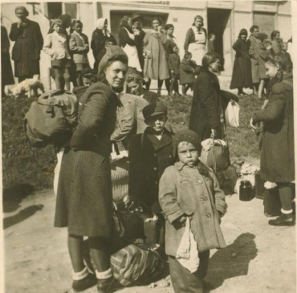 Rodina pred nástupom na evakuáciu.